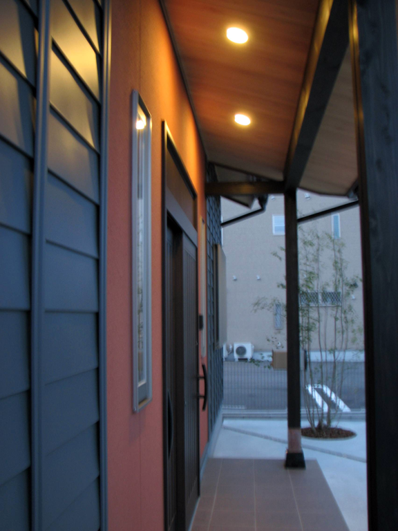温故知新「古きを訪ねて新しきを知る」という考えから、玄関は合掌造り風になっています。字の如く合掌とは先祖、神に崇拝する形となり天の気を受け入れることができます。 北にある玄関は五行の「水」の方位となり、「水」は「木」を生じるという五行の関係から木をふんだんに使うことで室内の気に安定をもたらすことができます。 また高い天井は気が充満し、その溜まった気が家の隅々まで流れるようになります。 神橋神社でも見られるように鳥居の前には神橋と架かってあります。これは神を通る神聖な場とされます。神を家に招く働きがあると共に、「愛の架け橋」となり家族の絆が強くなります。