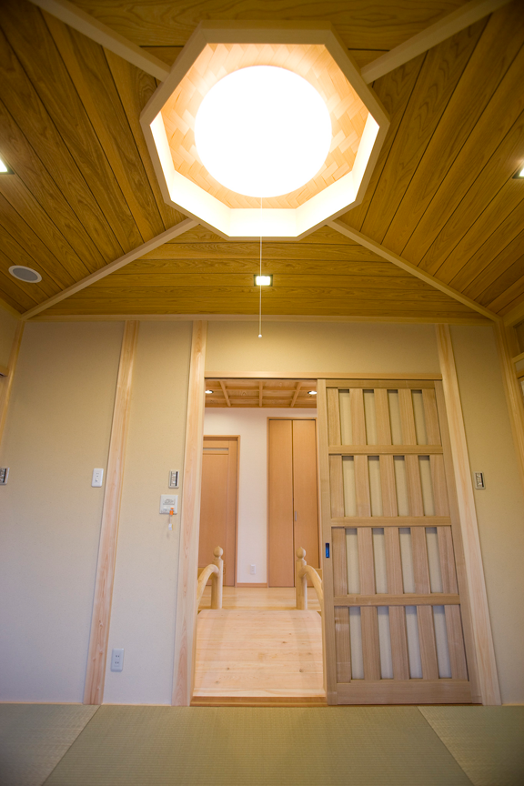 八卦天井八画の形をした天井はパワースポットの働きがあります。昔から八は末広がり、魔除けの意味がり大変縁起の良い形となります。