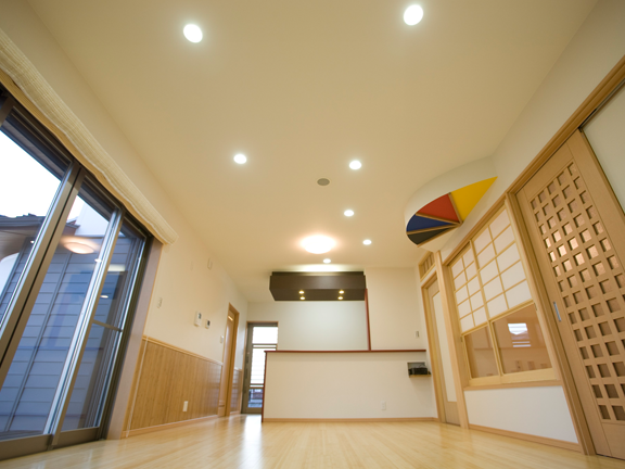 音(各部屋に天井スピーカーを取り付け)音感、気の流れ音は気を動かすためには欠かせないものとなります。気の流れは音と共鳴し合うため、家全体に生気が包み込むようになります。また家に足を踏み入れた瞬間から無意識の内に聞こえる音楽は住まう人の心の安定と安らぎをもたらしてくれます。